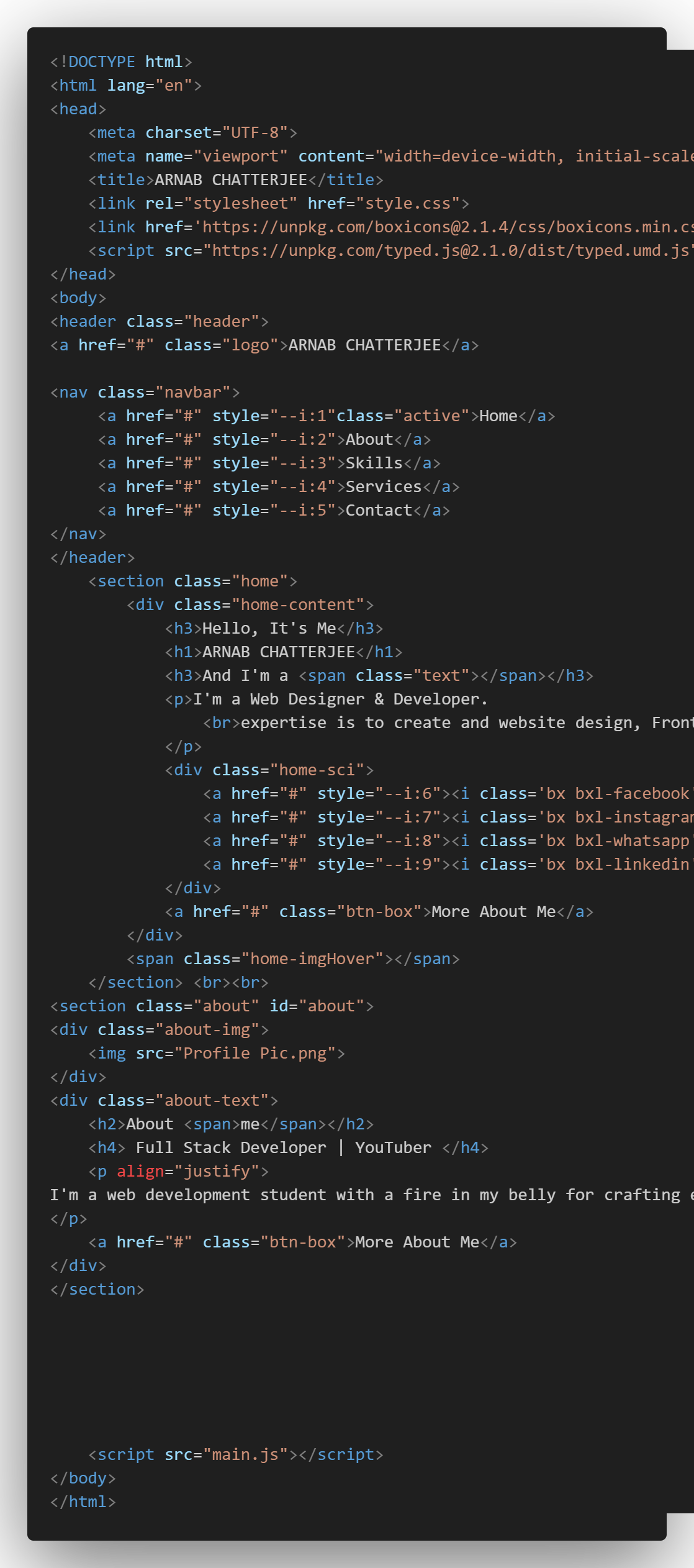 Welcome to my another portfolio! I’m Arnab Chatterjee, a passionate web developer and programmer with a keen interest in creating innovative and efficient solutions. Currently, I'm a student of Computer Science at Howrah Zilla School and an intern at YIIC by Scaler School of Technology. With a strong foundation in web development and a commitment to continuous learning, I strive to deliver high-quality projects that meet client needs and push the boundaries of what's possible. Explore my work and feel free to get in touch!
